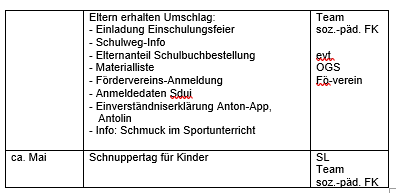 Der Übergang von der KiTa in die Grundschule ist für jedes Kind eine neue und spannende Erfahrung. Um den Kindern die Unsicherheit vor der neuen Situation zu nehmen und am bisherigen Bildungsverlauf anzuknüpfen, ist eine enge Zusammenarbeit zwischen Kindertageseinrichtung, Grund-schule und Elternhaus besonders wichtig. Diese Zusammenarbeit ermög-licht einen gelungenen Übergang.